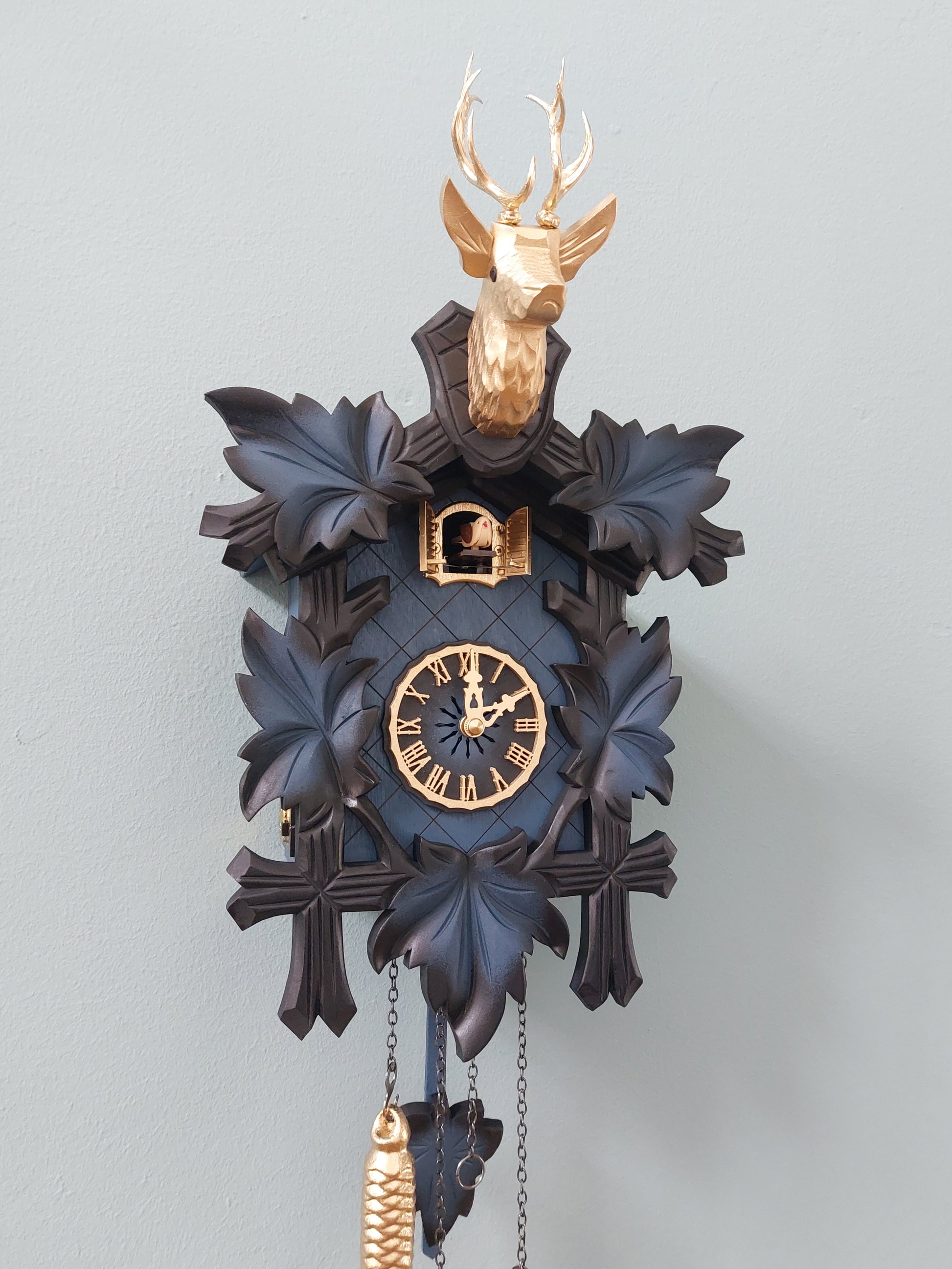 Diese Kuckucksuhr stammt aus dem Schwarzwald und wurde in liebevoller Handarbeit lackiert.