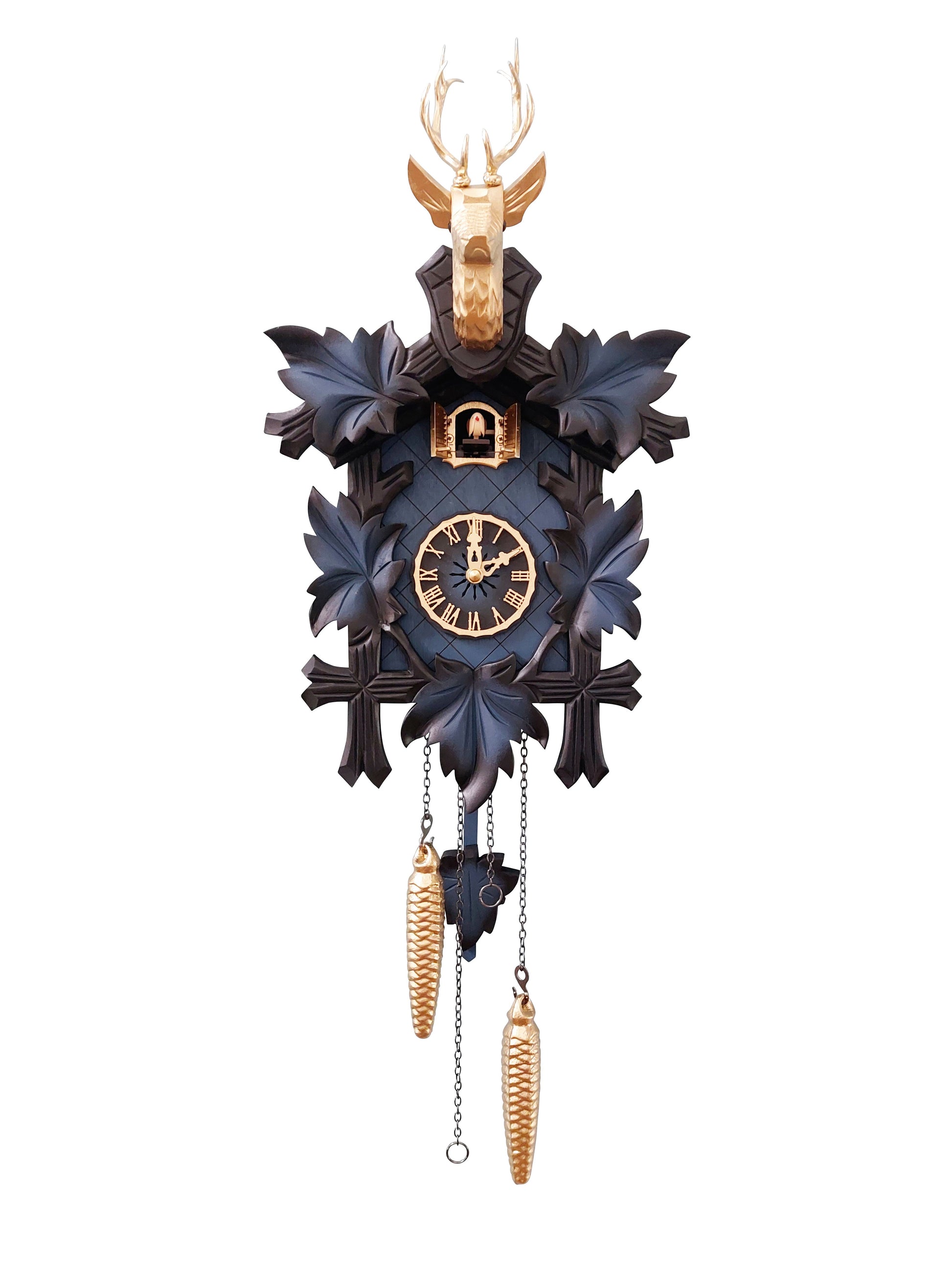 Die Uhr wird mit einem modernen Quarz-Uhrwerk betrieben und ist in drei Größen erhältlich. Auf Anfrage kann die Uhr auch mit Vogelaufsatz (anstelle des Hirsches) produziert werden.